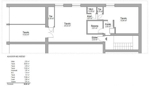 - egy teljes szint ami 60 nm és 5 helyiségből áll