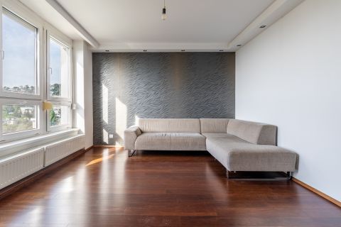 A lakást prémium minőségű anyagokkal újították fel a tulajdonosok saját részre: gránit konyhapult, sucupira fa parketta, magasfényű fehér Sykora konyhabútor és Siemens konyhagépek, illetve a Mitsubishi klíma mind az esztétikus, modern, és funkcionálisan is átgondolt megoldásokat tükrözik.