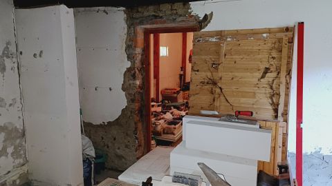 Egy különálló épületben lévő kisebb apartman teljes felújítása, átalakítása megkezdődött, befejezése igény szerint az új tulajdonos feladata lehet.