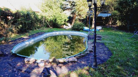 - Nyugodt, zöld környezetben, park mellett helyezkedik el a saroktelek, amely két helyrajzi számon nyilvántartott. ( 1566 és 712 m2 ) A bekerített udvaron kis halastó, szaletli, úszómedence gépházzal, állólámpákkal, melléképületek, fatároló, néhány gyümölcsfa és málnabokrok vannak. A telek hátsó része füves, jelenleg használatlan terület.