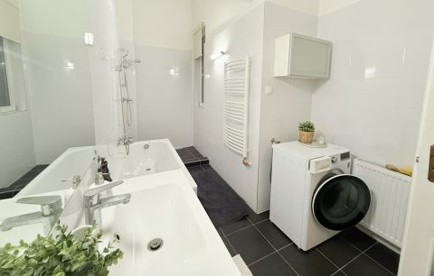 A lakás alapterülete 88 négyzetméter, három tágas szobával rendelkezik, ideális választás lehet akár családok, akár befektetők számára is. Az ingatlan teljes felújításon esett át, jó állapotban van, így azonnal költözhető. A gáz (cirkó) fűtési rendszer biztosítja a meleg és kellemes otthont a hideg téli hónapokban is, nyáron pedig klíma biztosítja a hűvös levegőt. A szobák elrendezése praktikus, így minden családtag számára kényelmes életteret biztosít. A tágas nappali és a világos hálószobák ideális környezetet teremtenek a pihenéshez és a mindennapi tevékenységekhez.