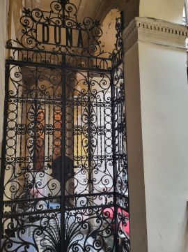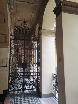 A lakást, eredeti gyönyörű kovácsoltvas ajtó választja el, a többi lakástól.