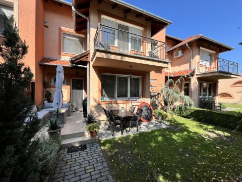 - földszint: nappali, konyha, kamra, fürdőszoba és tároló, a bejárat előtt 12nm terasz, valamint összesen 50nm saját használatú kert