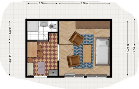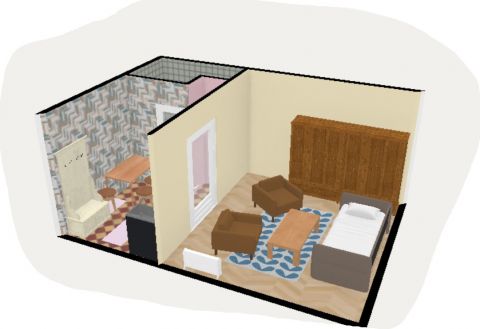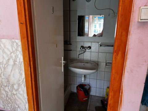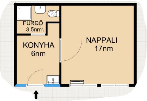 A LAKÁS: Egy pici 27 nm-es garzon. Az előszoba egyben a konyha is, szemben egy kicsi, de jó elrendezésű fürdőszoba és jobbra egy szoba található. A lakás szerkezetileg jó, de teljesen felújítandó.