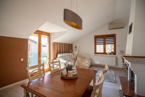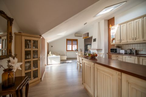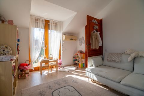 Lakóparki, emeleti 4 szobás lakás 2 db teremgarázzsal eladó! Törökkő csendes zsákutcájában eladó egy 2007-ben épült lakóparki 94 nm-es 4 szobás, 2 fürdőszobás, 2. emeleti lakás! Fekvéséből adódóan szép világos,ablakaiból és a teraszokról zseniális panoráma nyílik a budai hegyekre. 2 teraszos, így minden szobából van kijárat a teraszokra. A lakás kifinomult vintage hatású, nagyon jó állapotú, alacsony rezsijű (víz, gáz, villany külön egyedi mérésű). A képeken látható beépített konyhabútort, fürdőszobabútort az ár tartalmazza, valamint a beépített szauna is a lakás ékessége. A lakáshoz tartozik 2 db teremgarázs beálló hely, melynek az ára: + 20 M forint! Lift NINCS!