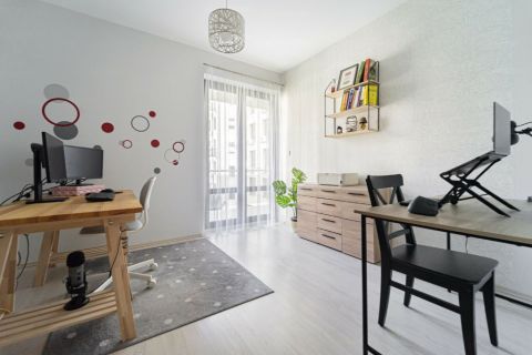 A lakás elrendezése kedvező: 3 különnyíló szoba- 2 hálószoba, amerikai konyhás nappali étkezővel, zuhanyzós fürdőszoba wc-vel, plusz egy külön wc kézmosóval. Sok beépített tárolóhely, valamint magas minőségű, egyedi konyhabútor található a lakásban.