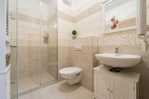 Felszereltség: - indukciós főzőlap - légkeveréses sütő - nagy hűtő és fagyasztó - mikró - mosogatógép - mosógép