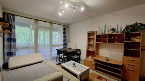 A lakáshoz tartozik egy 3 négyzetméteres erkély, amely zöldre néző panorámát kínál a környező területekre, lehetőséget biztosítva a pihenésre és a kikapcsolódásra.