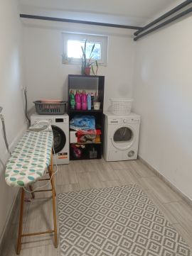 - 1. félszint: előtér beépített gardróbbal, külön WC, gépesített konyha, étkező