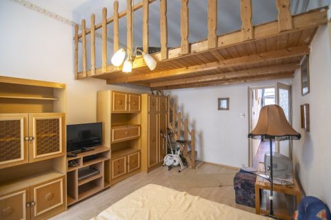 A lakás jó elosztású: A tágas szoba galériázott, így a tér praktikusabban kihasználható.