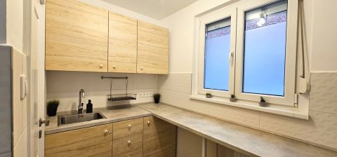 - ablakos konyha mely új konyhabútort kapott, kis zárható kamrája megkönnyíti a pakolást