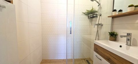 - fürdő wc külön helyiségben, fürdőben nagy méretű épített zuhany, új mosdó.