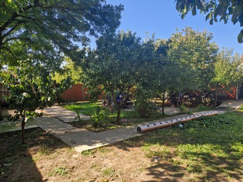 A gondozott telek méretét és elrendezését tekintve kényelmes életteret biztosít. A kertben tároló helyiség található a kerti szerszámok számára. A gépjármű kényelmes elhelyezéséhez, egy garázs áll rendelkezésre.