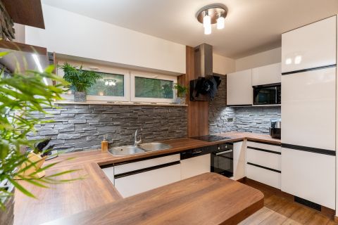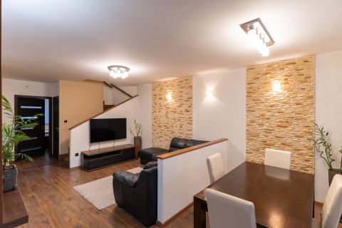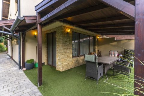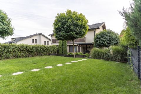 Ez a nagykovácsi ikerház nem csupán modern építészeti megoldásaival, hanem a gondosan kialakított, élettel teli kertjével is kiemelkedik a kínálatból.