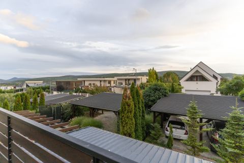 A teraszról nyíló zöldfelület kiváló helyszíne családi reggeliknek, délutáni pihenésnek vagy baráti összejöveteleknek.