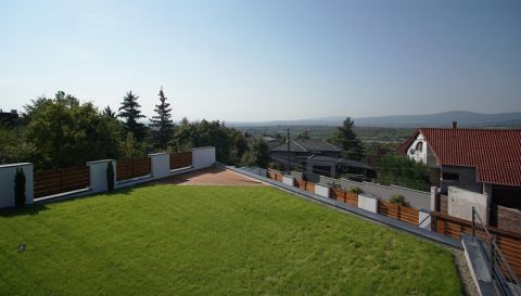 Szentendrén, a déli fekvésű Pismány hegy jól megközelíthető, középső részén található ez a panorámás, családi ház kültéri medencével.