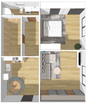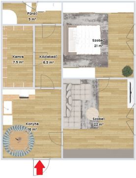 Külső és belső feljárattal egyaránt rendelkezik, mindkét szinten fürdő, wc, és lakóhelyiségek, kialakított konyha csak az alsó szinten található.