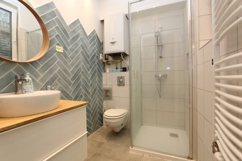 A ház rendezett, téglaépítésű társasház, kulturált lakóközösséggel. A környéken minden elérhető, ami a mindennapi élethez szükséges — boltok, tömegközlekedés, iskolák és zöld parkok egyaránt néhány percnyire találhatók.