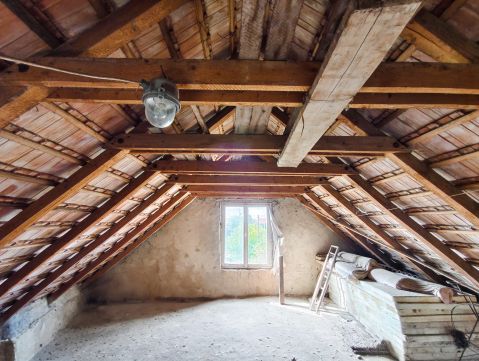 A tetőtér beépíthető, a tetőszerkezet kitűnő állapotú, beton födémmel készült, fa tetőszerkezettel és cserép tetővel.