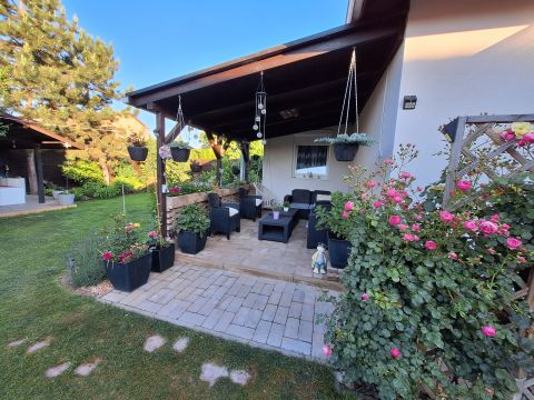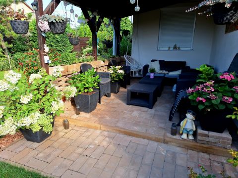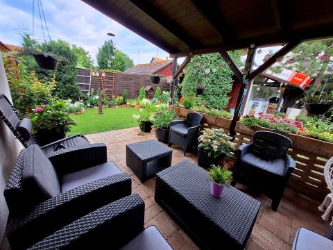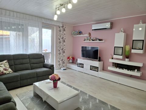 A téglaépítésű, 96 m²-es, hőszigetelt otthon egy 350 m²-es, parkosított telken helyezkedik el. Korszerű műanyag nyílászárók, redőnyök, szúnyoghálók és zsindelytető biztosítják a kényelmet és a tartósságot. A fűtésről turbó gázcirkó, míg a 5 kW-os klíma gondoskodik a megfelelő hőmérsékletről télen-nyáron.