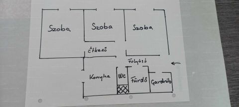 3 különnyíló szoba, zuhanyzós fürdő, külön wc, konyha, gardrób/tárolóhelyiség