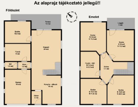 - 2 szinten nettó 131 - bruttó 182 nm-en 6 szoba mellett garázs, terasz és egy loggia is ki lett alakítva.