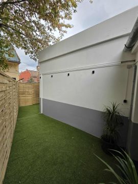 A kertben víz vételi lehetőség van és kültéri konnektort is felszereltek. Az új tulajdonosnak lehetősége van a földszinti hálószoba feletti lapostetőn egy tetőterasz kialakítására, akár úgy, hogy a tetőtéri szobából kijáratot nyit, akár a kertből felvezető külső lépcső megépítésével.