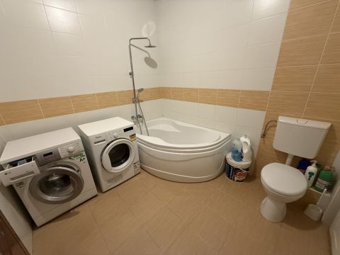 A nappaliban az ablakokra szalagfüggöny került, míg az előszobába beépített bútor. A fürdőszobában a kád nyáron lett kicserélve.