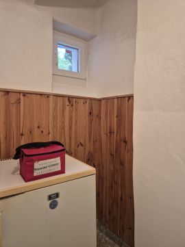 A folyosóról külön megközelíthető szoba (jelenleg konyha) és a fürdőszoba+WC kialakítható vendégeknek, vagy akár kiadásra is.