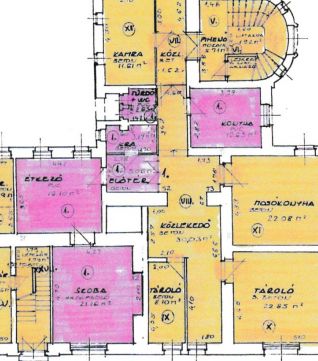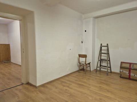 Átalakítással egy nagy konyha+étkező+ nappali alakítható ki egy szobával, és fürdőszobával.