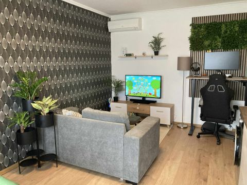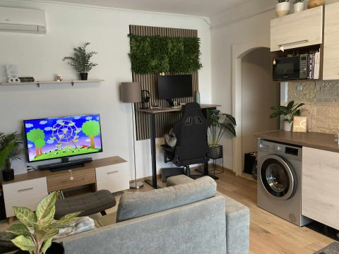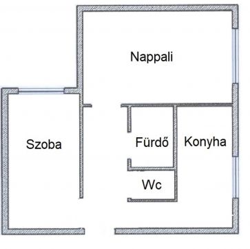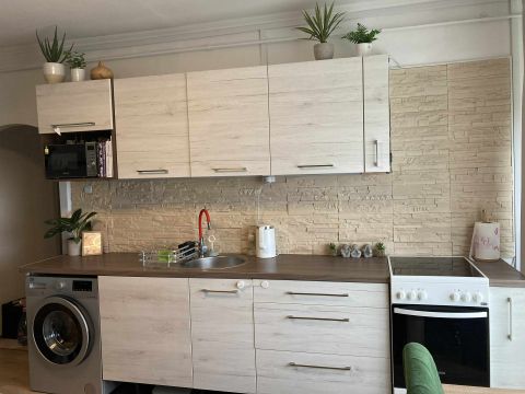 A konyha áthelyezésével a nappaliba egy plusz hálófülke került kialakításra, így a lakás praktikus elrendezésű és jól kihasználható.