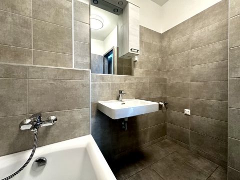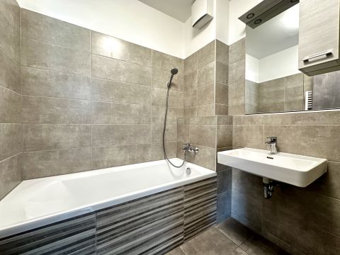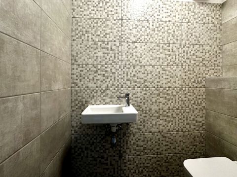 - Magas minőségű és esztétikus anyagokkal, igényes burkolatokkal, prémium Laufen szaniterekkel, Hansgrohe csaptelepekkel készült.