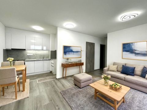 - Felosztása: előtér, amerikai konyhás nappali és étkező, hálószoba, fürdőszoba, WC, erkély.