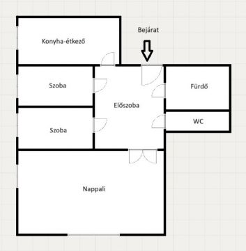 A lakás elosztása a következő: tágas előszobából nyílik a konyha+étkező benne a kamrával, nappali,