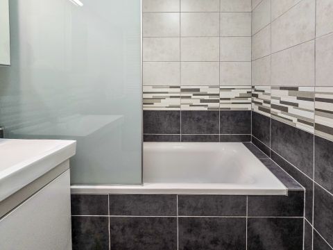 ✅ A szobákat és nappalit laminált padlóval, a vizes helyiségeket és az erkélyt járólappal burkolták.