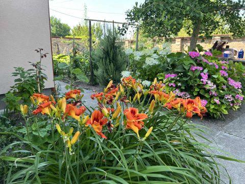 - virágos kert folyton virágzó növényekkel és cserjékkel