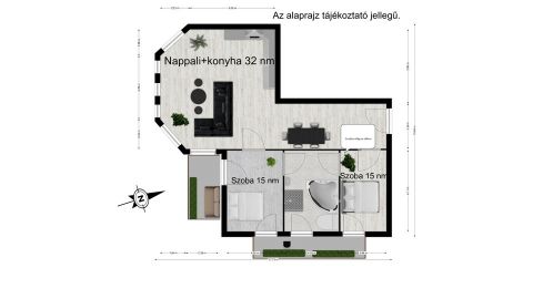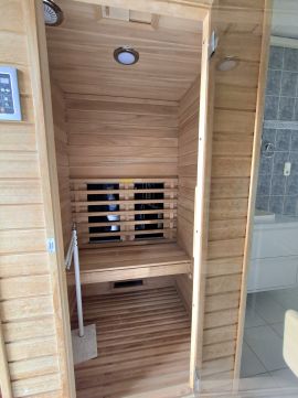 A konyha igény szerint visszaalakítható amerikai konyhás nappalivá, így akár két hálószobás elrendezés is kialakítható. A fürdőszoba sarokkáddal felszerelt, továbbá infraszauna is beépítésre került, ami a mindennapi pihenést teszi teljessé.