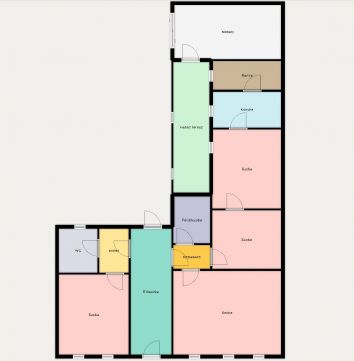 - Jelenlegi épület: 133 m², 4 szoba + konyha + fürdő + előszoba
