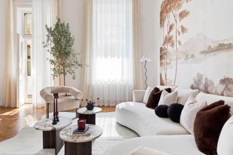 Ez a nappali egyszerre reprezentatív és bensőséges – olyan tér, ahová jó megérkezni, és ahonnan nehéz elindulni.