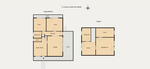 * Ház hasznos alapterülete 155 nm, ami magába foglalja földszinten a gyönyörű nagy 33 nm-es nappalit, 2 szobát, előszobát, konyhát-étkezővel, fürdőszobát + kamrát. Az emeleten is kialakítottak 1 konyhát, nappalit, szobát, fürdőszobát