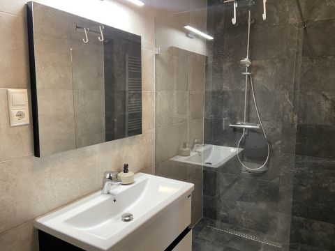 Fürdőszoba épített zuhannyal és WC-vel, plusz külön WC kézmosóval