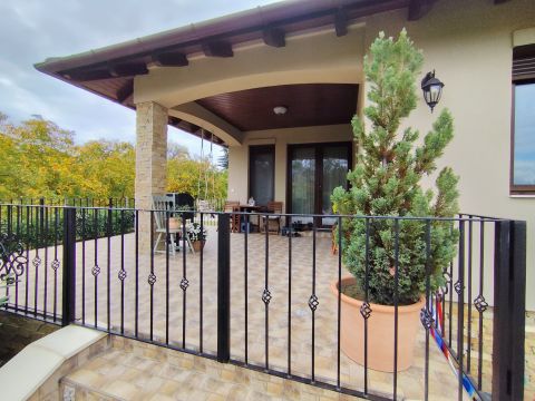 A 2022-ben kiváló minőségben épült, azonnal költözhető ingatlan helyiségei: előtér, a nappali-étkezővel egy légtérben, de külön helyiségben kialakított konyha, kamra, 3 hálószoba, közlekedő, fürdőszoba, külön WC kézmosóval, mosókonyha-kazánház, két fedett terasz.