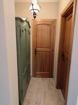 A beltéri ajtók egyedi asztalos munkával készültek.