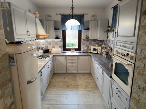 A Gorenje márkájú, széleskörűen gépesített konyha minden igényt kielégít.