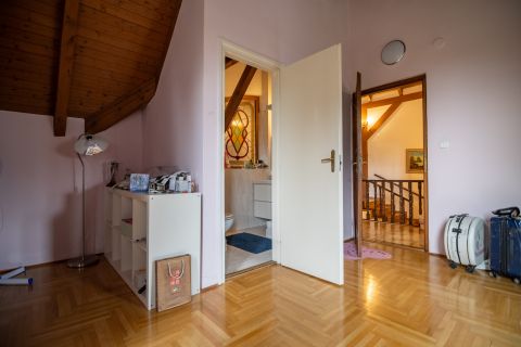 Eladó családi ház ritka dupla telken (1427 m²) Máriaremetén, a II. kerület egyik legjobb részén. A ház kiváló szerkezeti állapotban van, 1990 körül épült tömör téglából, vastag falakkal. 2016-ban teljeskörű felújításon esett át: új szigetelés, 3 rétegű műanyag nyílászárók, belső felújítások, pince is megújult.