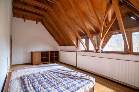 A ház 7 szobás, 5 WC-vel, 4 zuhanyzóval, 2 nappalival és felszerelt konyhával, így ideális nagycsaládosoknak vagy befektetőknek. A környék kiváló infrastruktúrával rendelkezik: iskola, orvos, bolt, játszótér, uszoda a közelben.