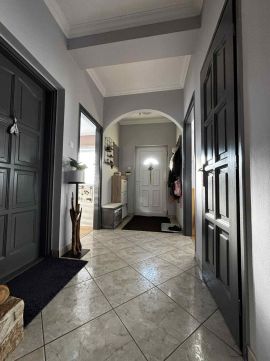 Hajdúsámson, Sámsonkert csendes, rendezett részén eladó egy nettó 81 m²-es, modern kialakítású ikerház első fele, 350 m²-es parkosított telekkel és garázzsal.