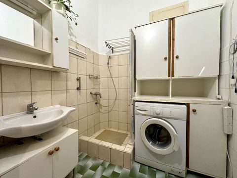 - A kényelmes méretű zuhanyzós fürdőszobában kapott helyet a mosógép, a toalett külön helyiségben van.