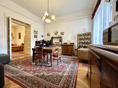 - Első emeleti, 71 m2-es, 2 szoba + cselédszobás, jó elrendezésű lakás, külön konyhával, kamrával, zuhanyzós fürdővel és külön WC-vel.