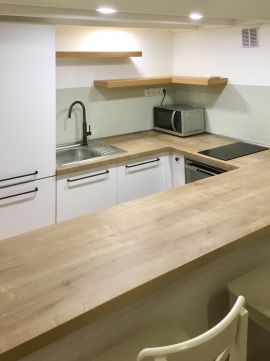 - A modern konyhagépekkel felszerelt konyhához kapcsolódik a 4 főnek is kényelmes étkezőpult.